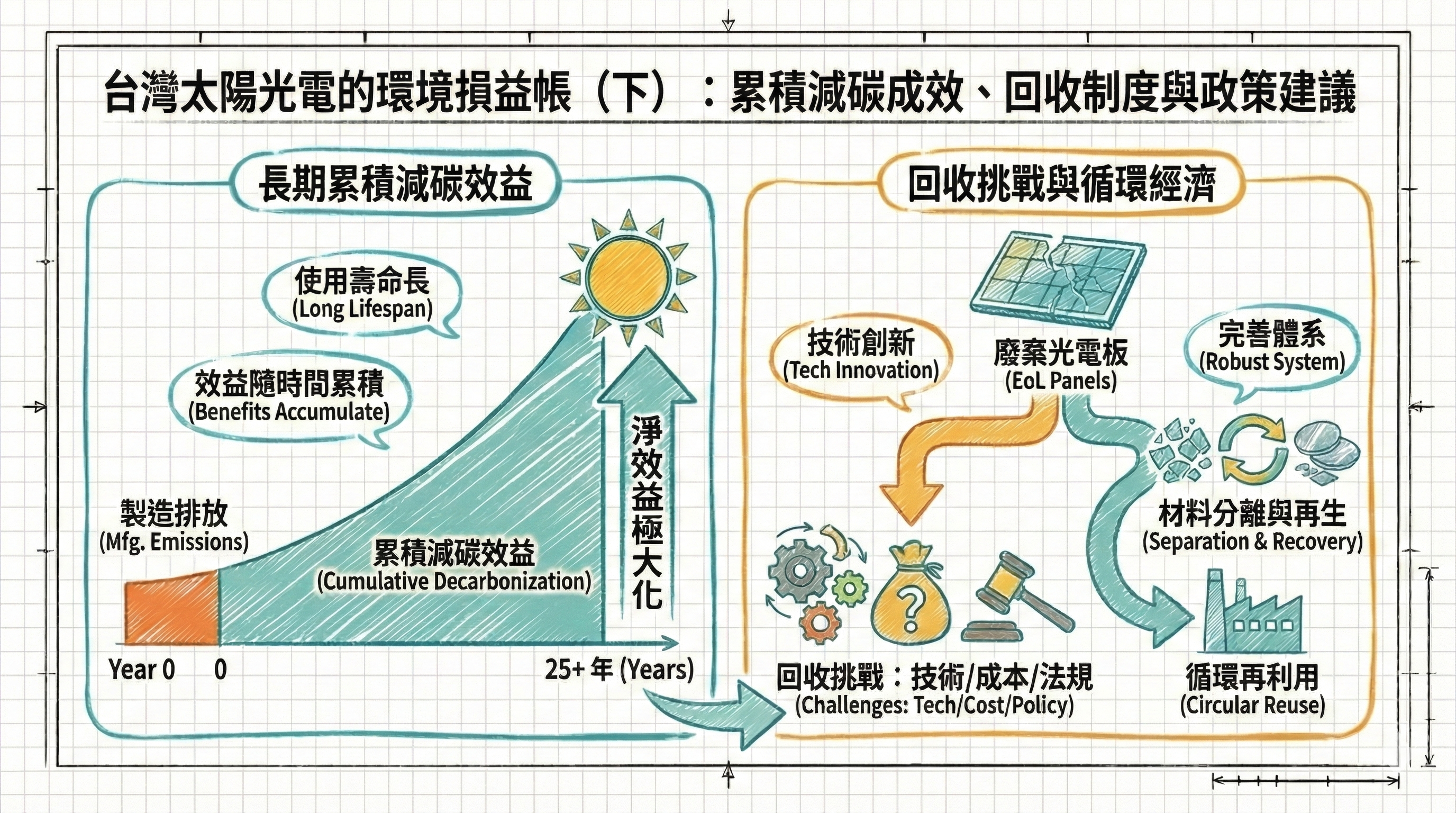 台灣太陽光電的環境損益帳(下):累積減碳成效、回收制度與政策建議